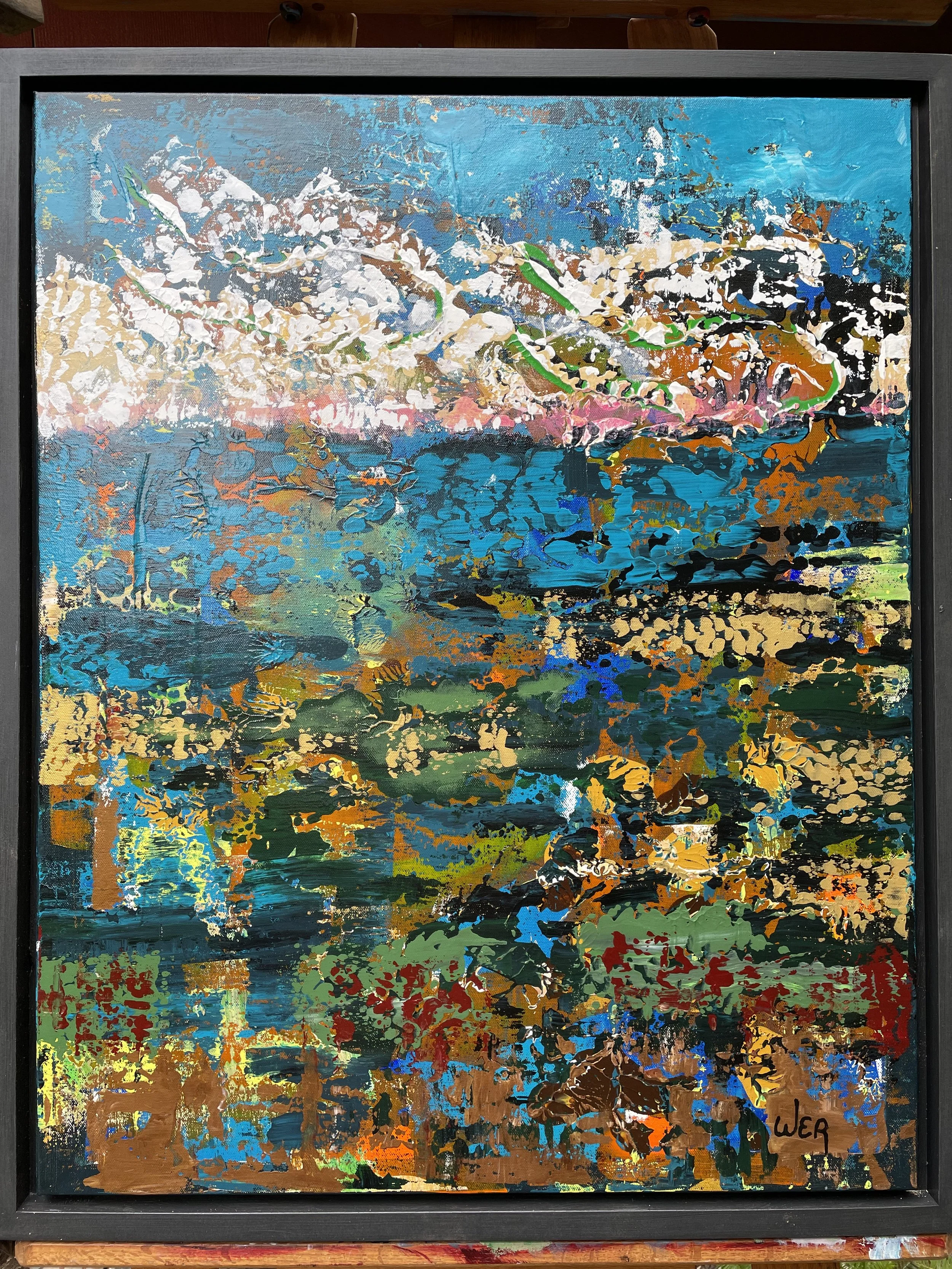 I try to capture the eye and have it linger on the different neighborhoods of the painting. Texture, color, and movement combine to offer interest to the viewer. Balance is a constant consideration, as is unity, especially in the final detail.